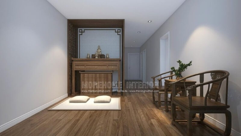 Bố trí phòng thờ đẹp với vách cnc khắc gỗ đẹp, sang trọng.