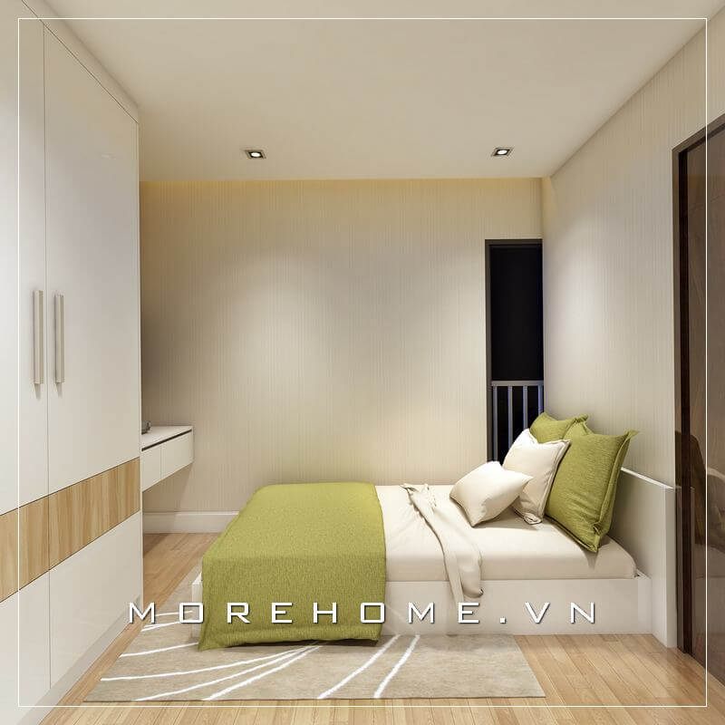 Không gian phòng ngủ tuy nhỏ nhưng với cách bố trí đồ nội thất tối giản của KTS Morehome đã giúp gia chủ có được không gian nghỉ ngơi đầy công năng.