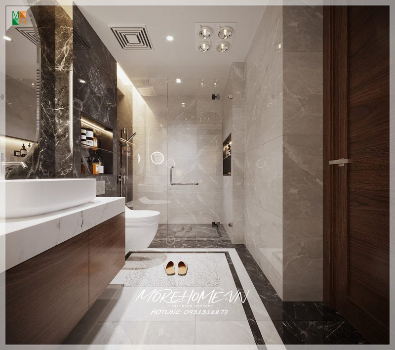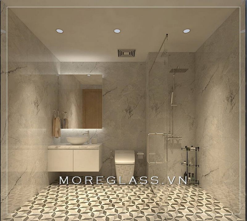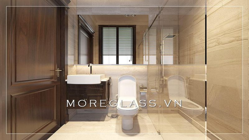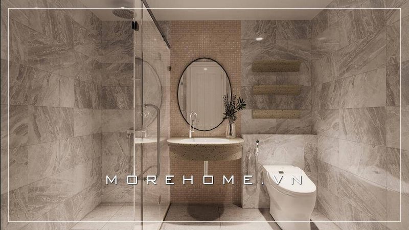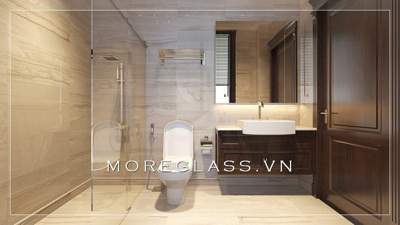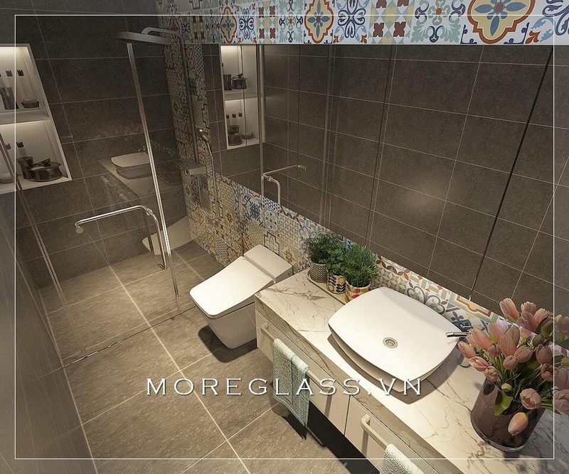 Thiết kế phòng tắm chung cư hiện đại, thoáng rộng khi kết hợp với các vật liệu như gạch và kính