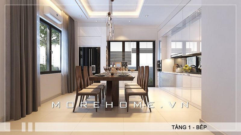 Thiết kế nội thất phòng ăn biệt thự hiện đại, sang trọng mang lại không gian cao cấp, ấm cúng cho không gian ngôi nhà.