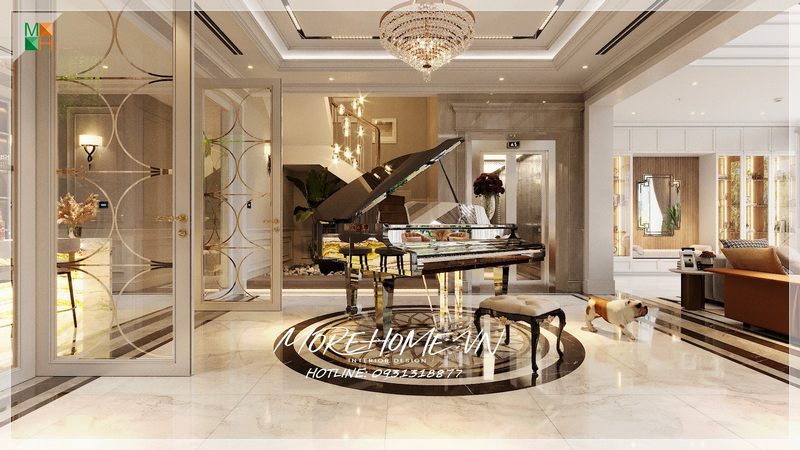 Phòng khách có đàn piano 1 không gian sang trọng và hiện đại của căn nhà. Một không gian hoàn hảo, tuyệt vời mà mọi gia đình đều mơ ước.