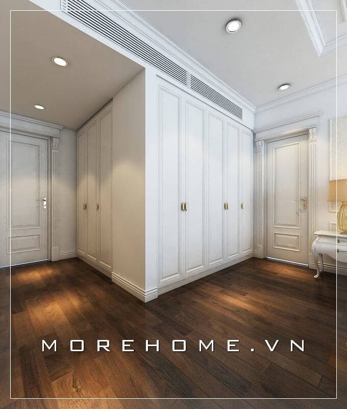 Mẫu tủ quần áo âm tường phong cách tân cổ điển được gia chủ lựa chọn giúp cho không gian thêm phần thoáng rộng hơn cả