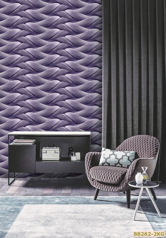 Giấy dán tường 3D màu tím có họa tiết là những sợi dây thừng được đan xen nhau tạo nên một cảnh đẹp độc lạ cho không gian.